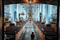Nadat we voldoende van het uitzicht hebben genoten, dalen we af en begeven we ons naar de Nikolaj Kunsthal, een voormalige kerk die nu dienst doet als een kunstgalerie. De tentoonstellingen zijn zowel modern als historisch, en de combinatie van het oude kerkinterieur met hedendaagse kunst creëert een fascinerende sfeer.